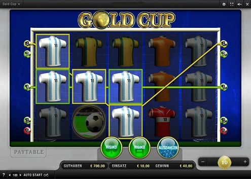Der Name lässt schon erahnen, dass es sich bei diesem Spiel um Fußball dreht. Warum bei Wind und Wetter auf den Fußballplatz? Das kann man wesentlich einfacher haben, genauer gesagt als Onlinespiel bei Sunmaker und hierbei handelt es sich um ein Masterpiece von Merkur, denn alles dreht sich um Fußball und dem Gewinner winkt der goldene Pokal. An sich ist das Spiel sehr einfach aufgebaut, was natürlich auch Anfängern zu Gute kommt. Als Symbole gibt es lediglich einige Fußballspieler und natürlich den goldenen Pokal. Mindestens drei oder mehr gleiche Symbole auf der Spielreihe, von links nach rechts ergeben bereits einen Gewinn.